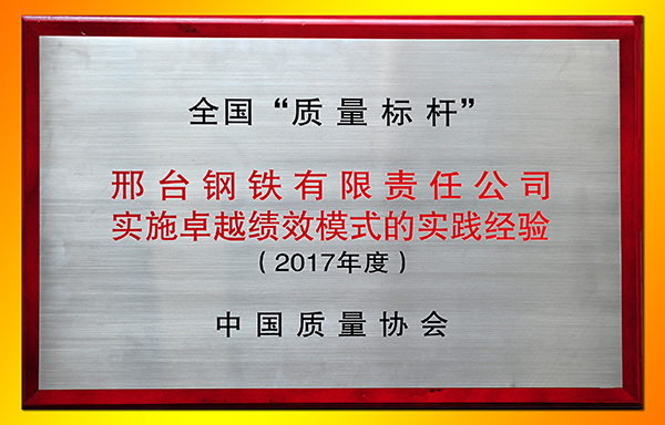 According to the news from MIIT (Ministry of Industry and Information Technology) and CAQ (China Association for Quality), "Practical Experience in Implementing the Excellent Performance Mode" declared by Xingtai Steel was voted as "Quality Benchmark in 2017" and recommended as regular practice experience.