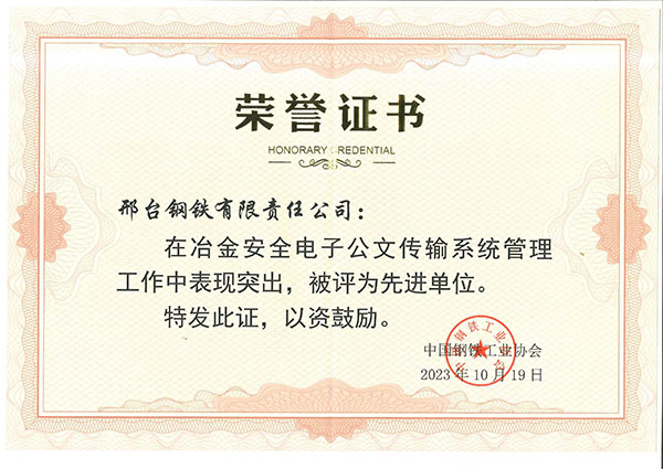 - Xingtai Steel was named as "Advanced Unit of Emergency Man…