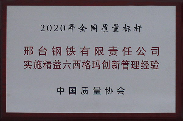 Sponsored by China Quality Association,  the exchange activity  for national quality benchmark,  which is undertaken by Shanxi Provincial Department of Industry and Information Technology and Taiyuan Municipal Government,  was held in Taiyuan, Shanxi Province. During this activity,  "implementing the experience of  six sigma innovation management " declared by Xingtai Steel was voted as " National Quality Benchmark in 2020".