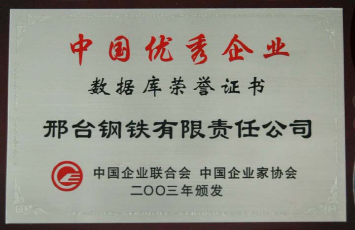 2004年,邢鋼獲得由CECA國(guó)家信息化測(cè)評(píng)中心頒發(fā)的“中國(guó)企業(yè)信息化500強(qiáng)” 榮譽(yù)稱(chēng)號(hào)。