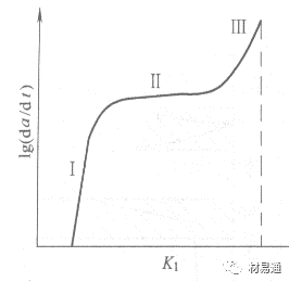 II區(qū):da/dt與K1無關(guān),通常說的裂紋擴(kuò)展速率就是指該區(qū)速率,因為它主要由電化學(xué)過程控制,較強烈地依賴于溶液的pH值,粘度和溫度;